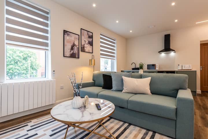 Spacious and modern, our one bedroom apartment is the perfect place for a touch of luxury and comfort. Featuring an open-plan layout with stylish lighting features and a huge must-see bathroom! In short walking distance to both Leicester City Football Club & Leicester Tigers, our fabulous renovated apartment in prime location Leicester City Centre is a great choice.