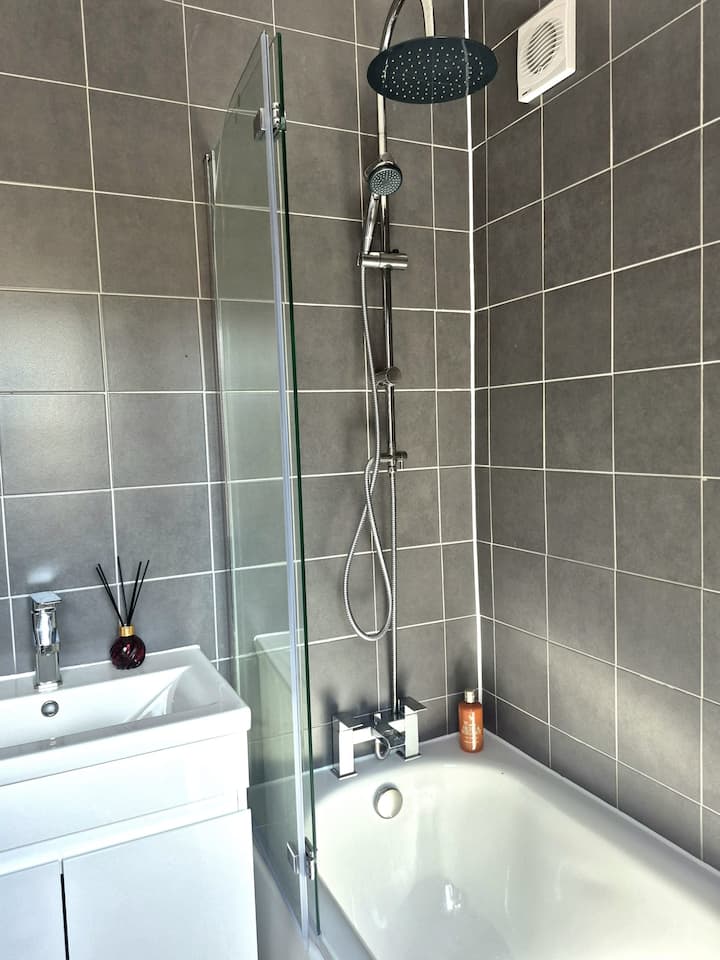 Downstairs bathroom with WC, bath and dual shower. Upstairs bathroom with WC and huge walk in shower.