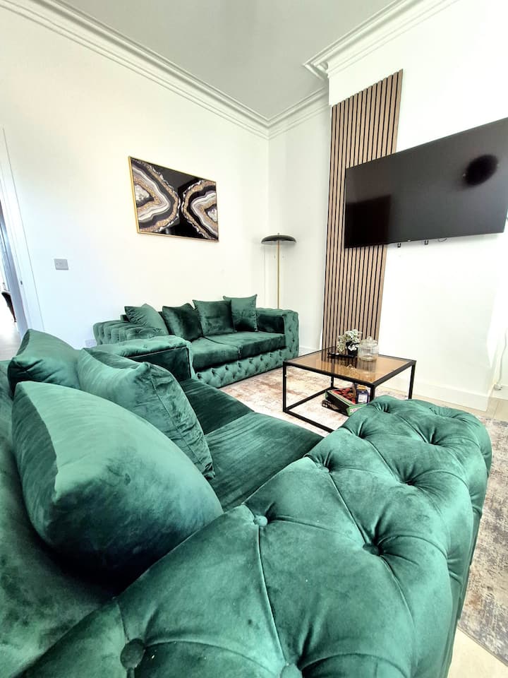 Enter into the large comfortable living room ready to relax in front of the smart TV. Then seperate stylish dining area with pool table and games for your entertainment.