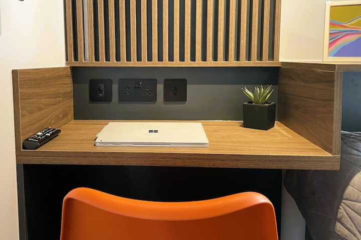 Enjoy a well-appointed, comfortable stay just steps from Leicester Royal Infirmary and the DMU campus. Unwind with your favourite Netflix shows on the 50″ 4K Samsung Smart TV, rest easy on a plush memory foam mattress, or get productive at the dedicated workspace. Whether you’re here for study, work, or rest, this modern studio is your ideal home away from home.
